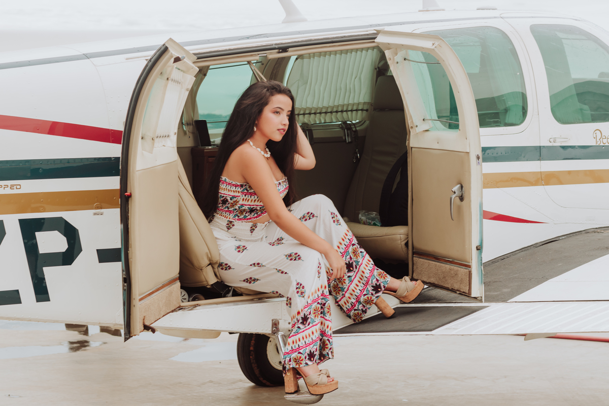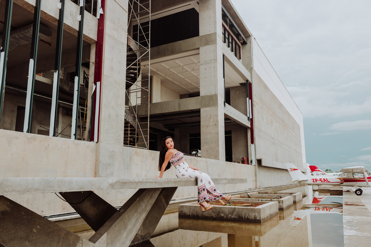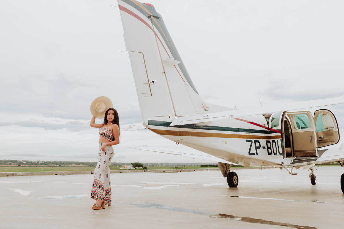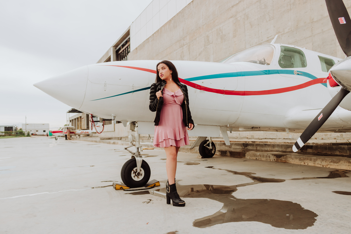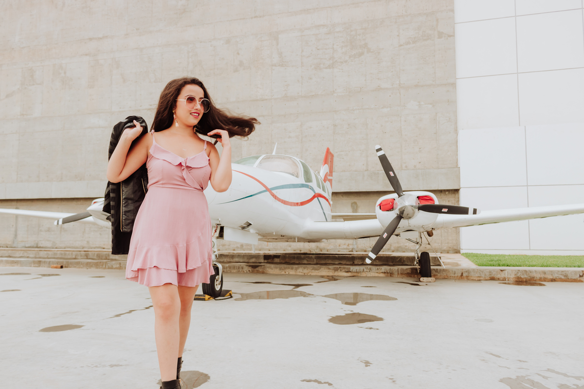A pesar del clima inestable, las hermosas tomas que realizamos en hangar del aeropuerto no se hicieron esperar. Toda la buena actitud y buena onda de Angie ayudaron a obtener este hermoso recuerdo para sus quince años. Culminamos su sesión de fotos en el Garden Club